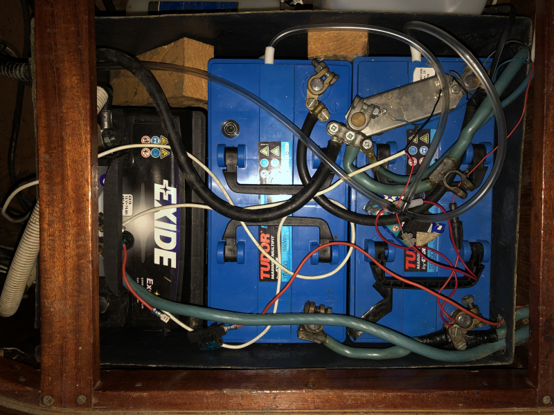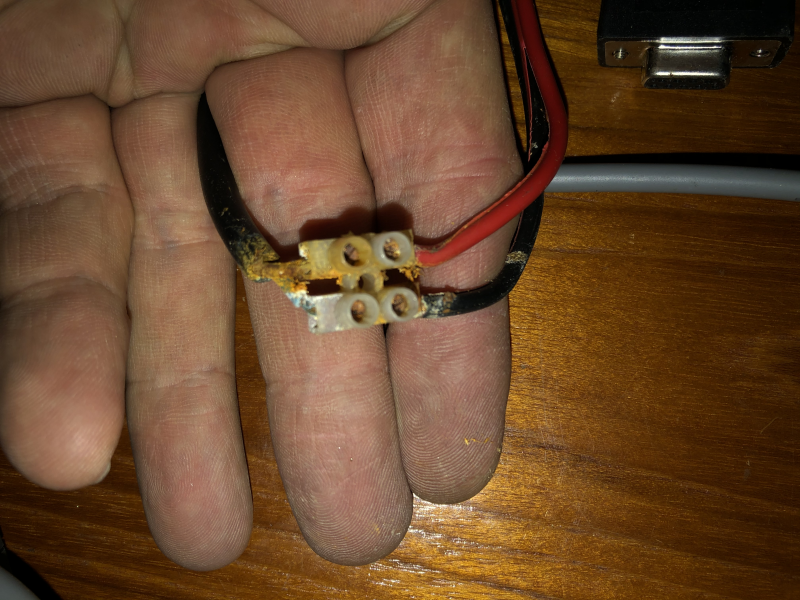 varsin yleisiä ilmiöitä. Spagettia akun päällä. ![]() Ammattitermetein tämä on nk. "ML-sulake", eli kaapeli vaihdettu sulakkeen puutteessa sen paikalle. ![]() Hapettuneet VHF-liittimet ei toimi. ![]() Normaali kytkentä vanhassa veneessä. ![]() Maasähkön nollajohdin liki irti 230VAC johtoliittimessä. ![]() Henkilökohtainen suosikkini, ruskea johdin KEVI johtimena pääkeskuksella. ![]() Alamittainen diodi. Koneen laturi vaihdossa korvanut 115 A ja diodi jäänyt takamatkalle 75A koossa. Ja tämä klassinen malli hukkaa myös 0,7 volttia. ![]() |